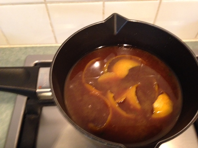 - Add the sauce to the pan, add the orange zest, bring to the boil, adjust seasoning and simmer, uncovered for 5 minutes. Strain to remove the zest. The sauce is ready.