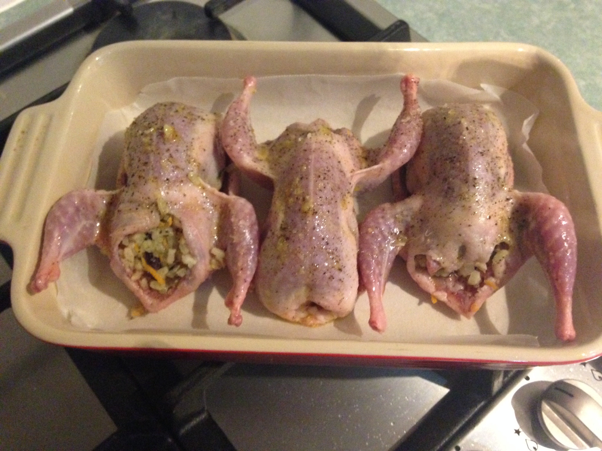 Maggie likes quail. A lot. She introduced it to my diet – now, there’s an oxymoron for you – and there are now three quail recipes in our repertoire. The other two were added in 2013: quail involtini, for which Maggie did the boning; and roast stuffed quail. We cooked the latter again last weekend.