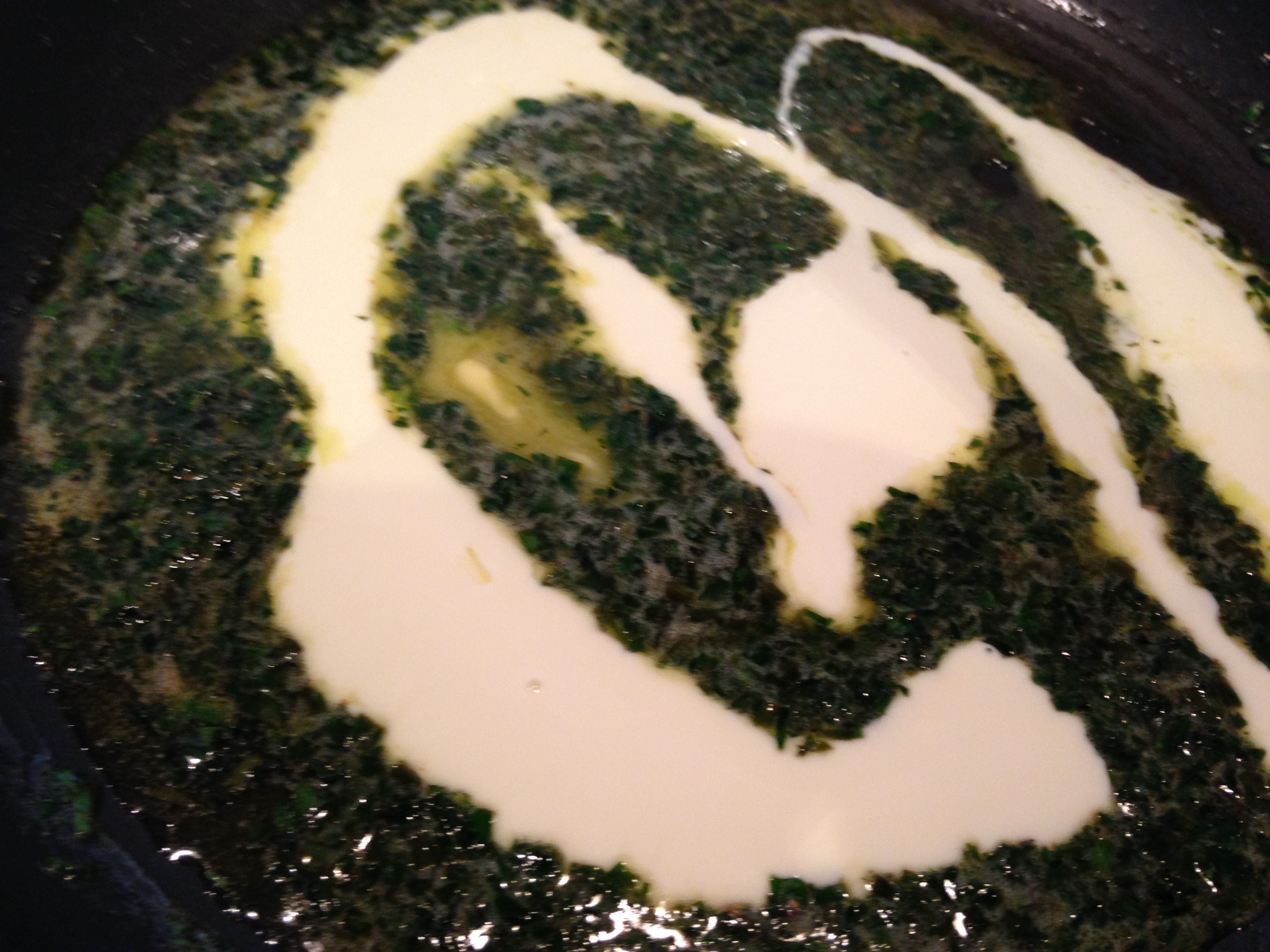 I added another knob of butter off the heat, then some freshly-picked herbs Maggie had chopped – parsley, chives and a little tarragon; add the herbs to a hot pan and they will leap out in all directions! Then, over gentle heat, a couple of teaspoons of lemon juice and a similar amount of the Australian riesling wine I had chosen to accompany our lunch, a pinch or two of salt and some ground black pepper. Finally, some cooking cream. This last ingredient is not traditional but I prefer the texture of the resultant sauce and the way it stays with the fish when served. Voila!