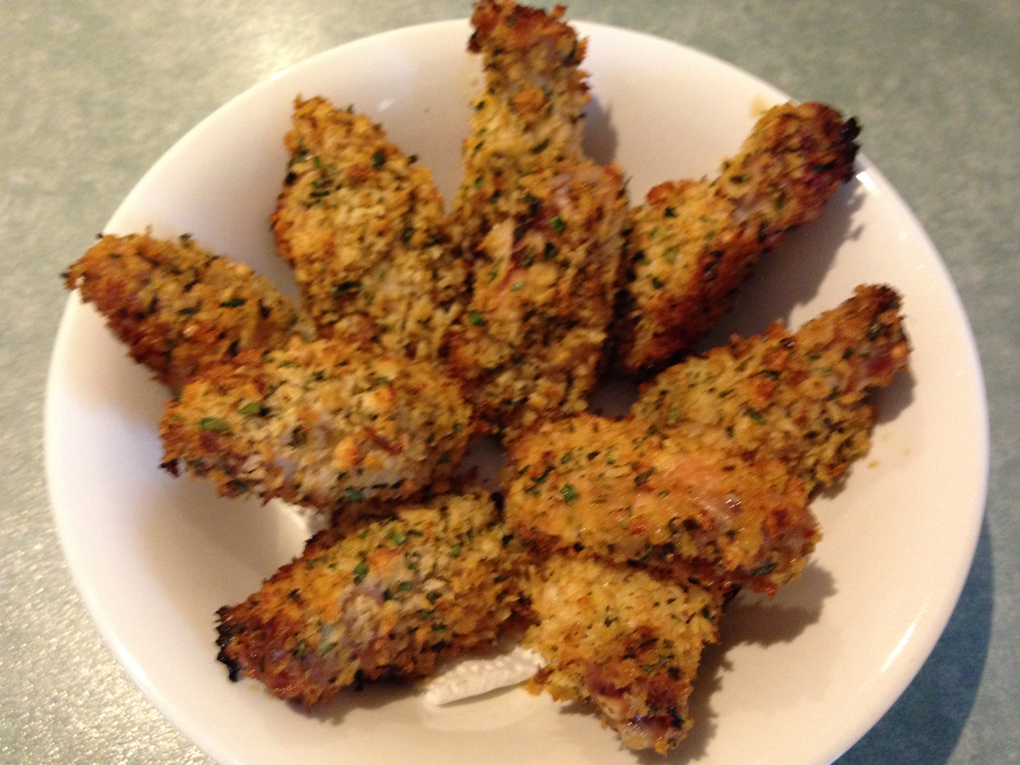 A few years ago, we used to buy some of our meat from a butcher whose product range included pieces of chicken wing coated with breadcrumbs and a few herbs and spices, eg red chilli flakes. They cooked up quite well on the grill of the barbecue we had at the time, provided we brought the pieces to room temp first, sprayed them with olive oil, cooked them over a medium flame and put the lid down for part of the cooking. (Phew, that’s a plethora of provisos!)
