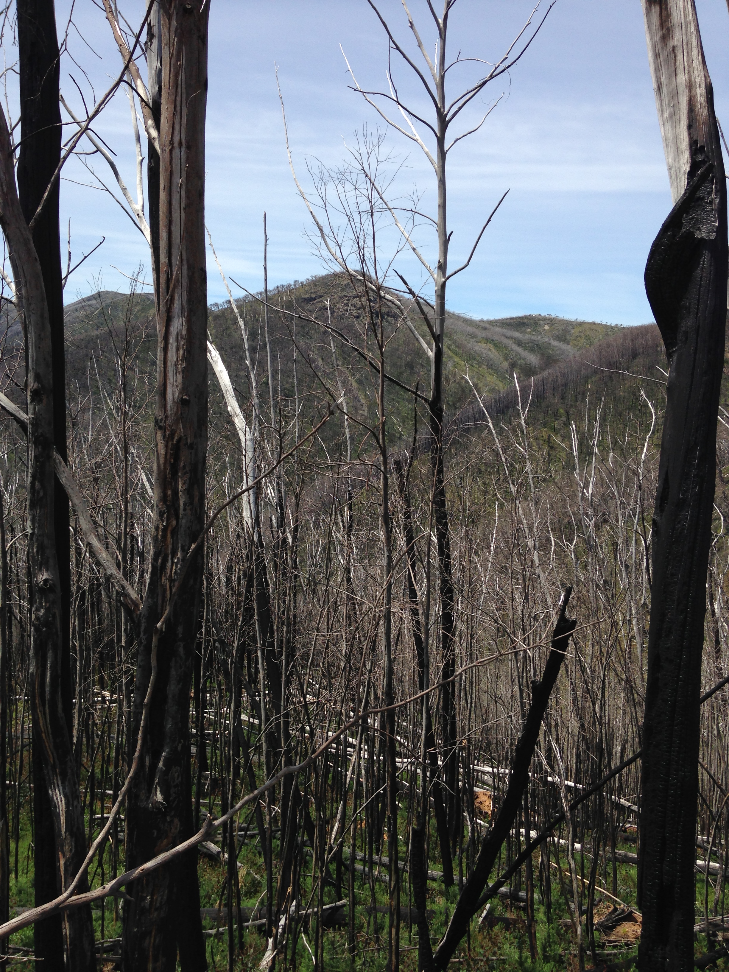 As we made the return trip down to the Kiewa Valley, I felt a mixture of my renewed fondness for the sights and scents of Victoria’s native bushlands and not a little awe at the degree of destruction that had been wrought by fire.