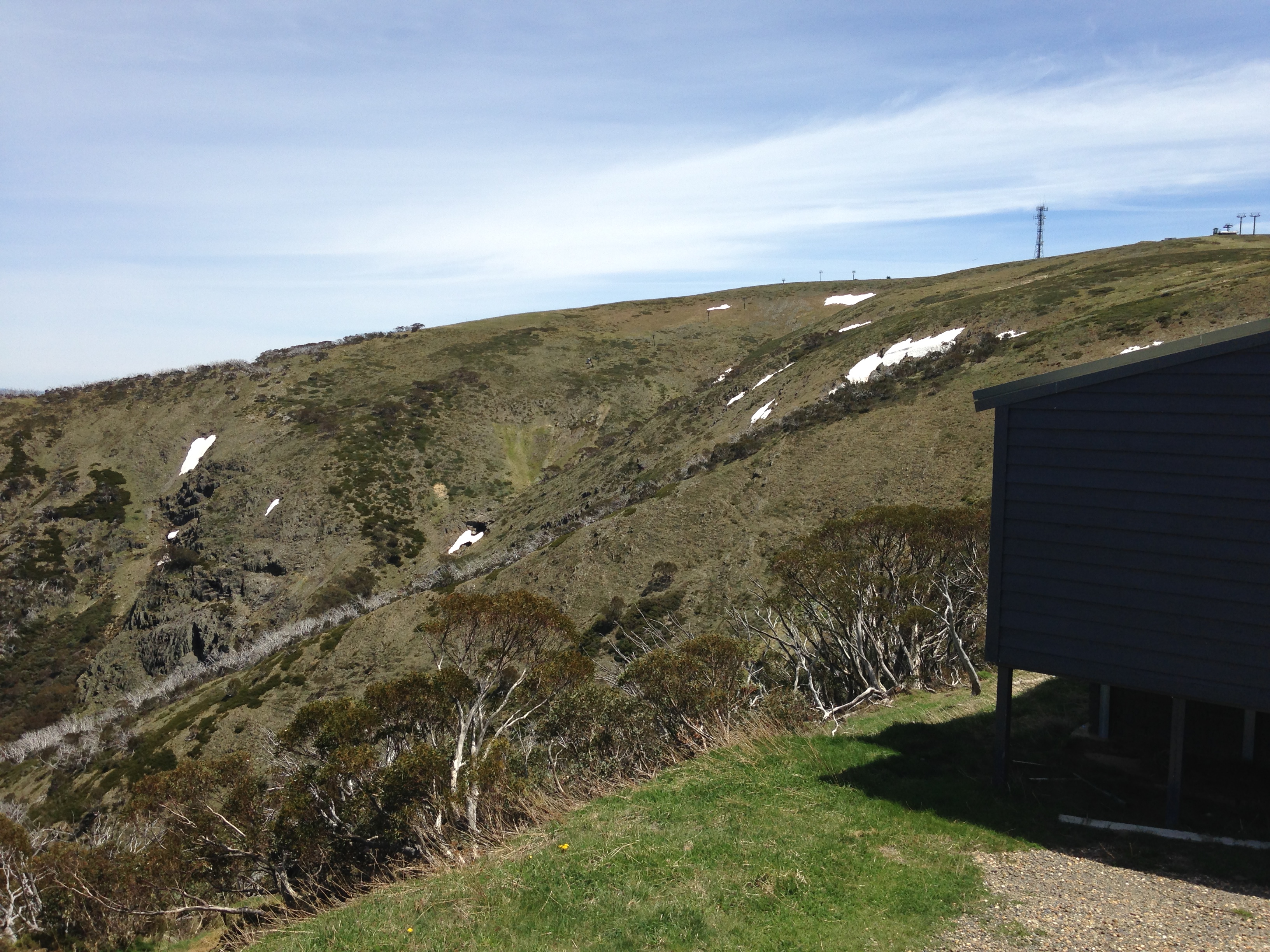 On a lighter note, here are photos of the last pockets of snow, at the back of the ski resort and, in the distance, on the southern face of Mt Feathertop.