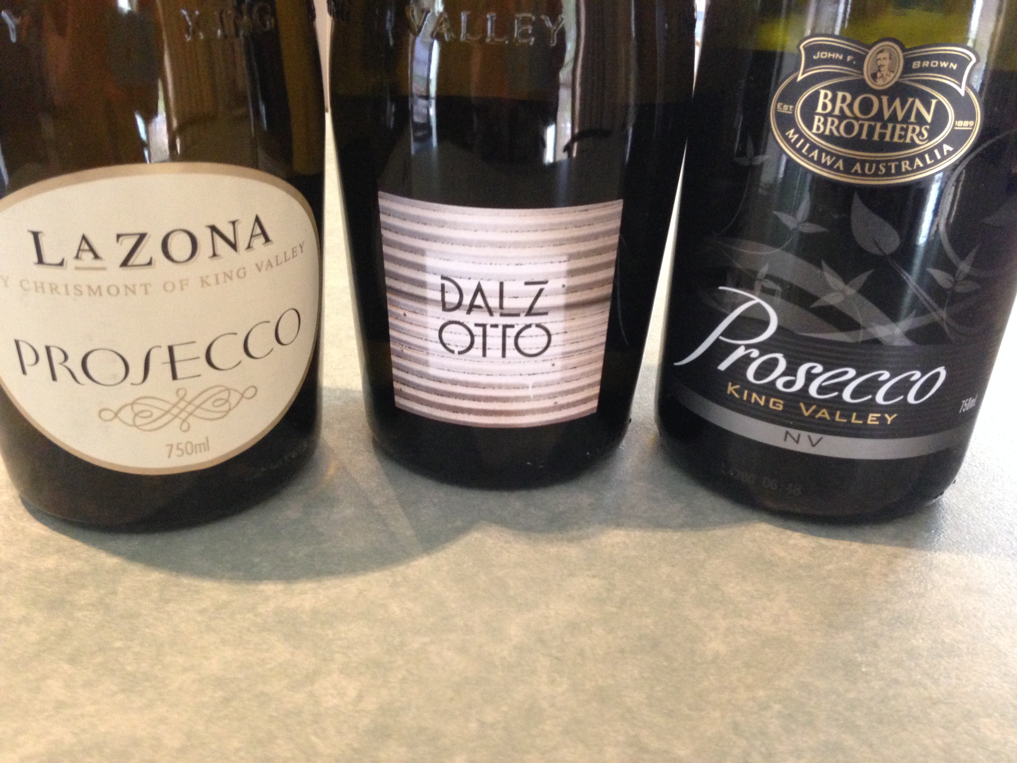 We bought three bottles of prosecco, including one from Dal Zotto wines, the first winery to make prosecco in Australia. Interestingly, the next time we visited one of the ‘barns’ that dominate the liquor retail trade here, we noticed that there were as many as 20 different brands of prosecco on display. Some were from Italy, several from the King Valley, and some were being offered by labels that have hitherto been associated with low-cost bubbly in a pseudo-French style. The prosecco band-wagon has left the station!