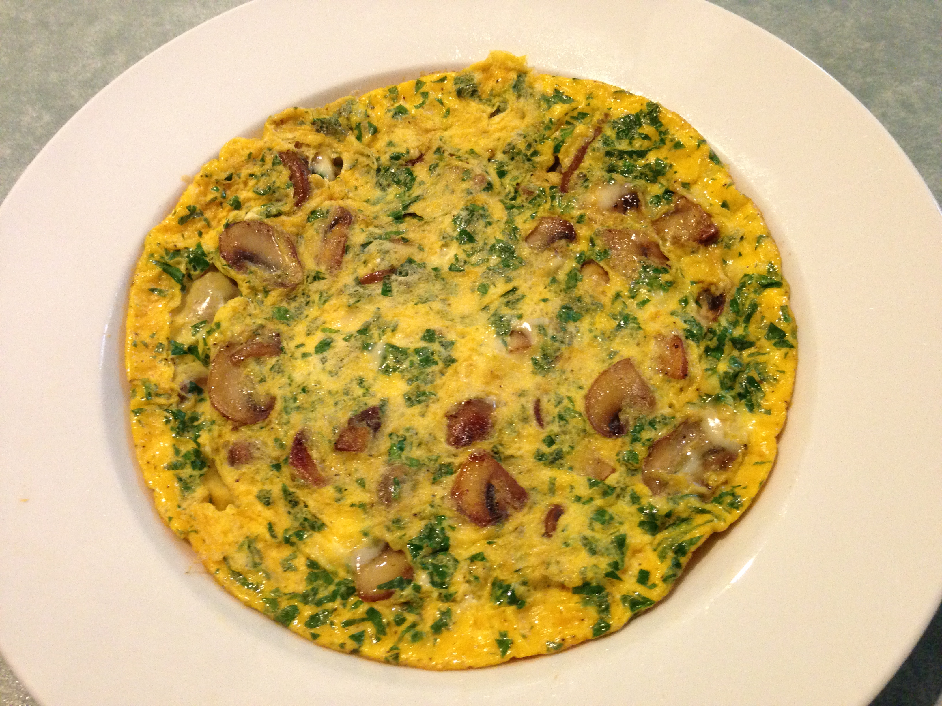 In my recent post about some of the ways we use the fresh tarragon from our garden, I wrote about what I call my ‘French omelet’. I mentioned that I make a second omelet, with mushrooms, parsley and cheese. I’ve just made and consumed one of these – it’s lunchtime in Melbourne – so I thought I’d briefly tell you about it, beginning with a photo.