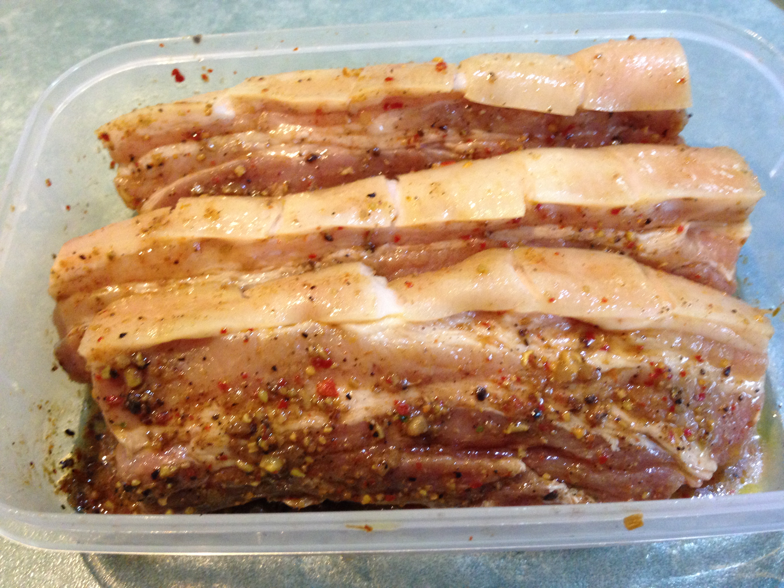 The pork had been marinated overnight in a wet paste of berbere spice mix, cumquat-infused vinegar, olive oil and about 1/2 a teaspoon of caster sugar. Then we roasted them for 35-40 minutes, which rendered most of the fat and gave the meat a dark golden brown hue.