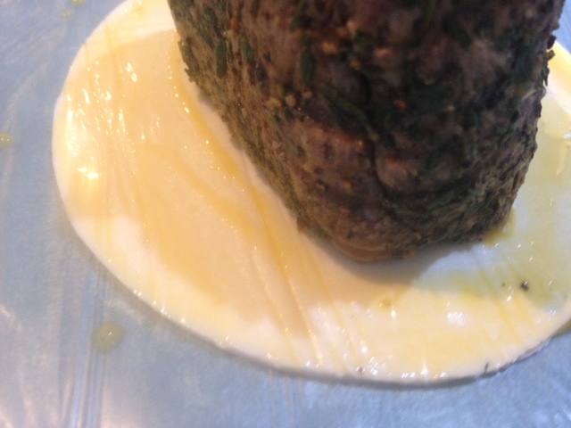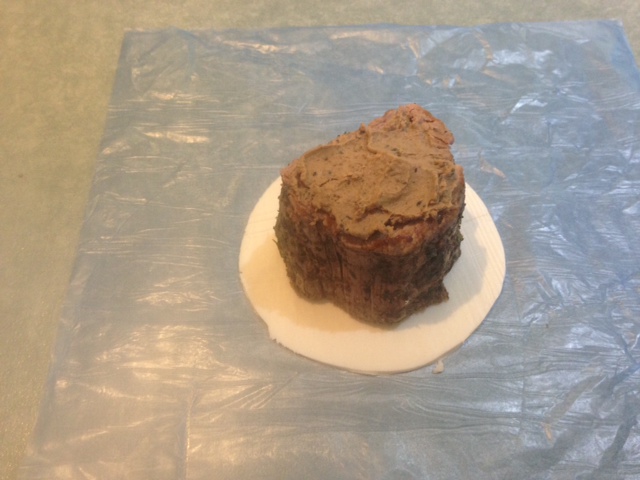 Each piece of beef was placed on a base and topped with a generous amount of pate infused with black pepper then about 1/3 of the mushrooms.