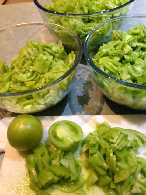 Early last week, we discovered that our most productive large-fruit tomato had, in turn, been discovered by members of the local possum community. We considered using strings of battery-powered LED lights to deter them but, with a forecast of several days and nights of showers and rain, this didn’t appeal as a reliable strategy. So, we decided to cut our losses, harvest all the green fruit and convert most of it into Maggie’s green tomato pickle, a product that is VERY popular with family, friends and Maggie’s work colleagues.