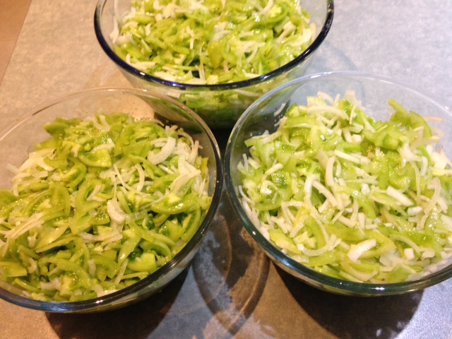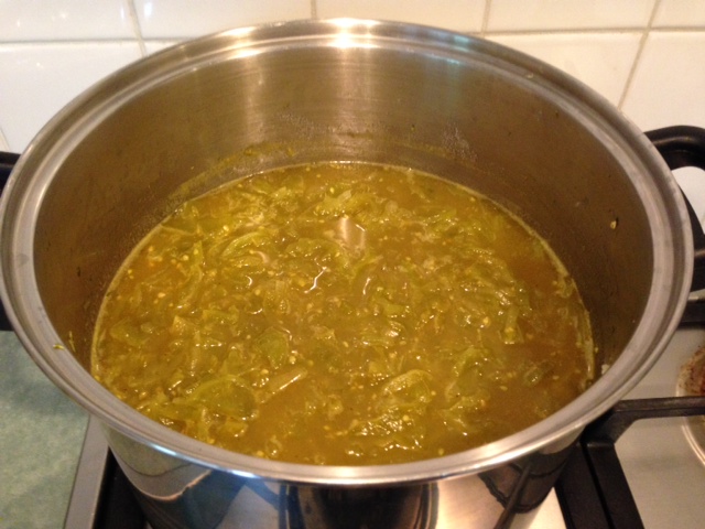 We began with 3kg of green fruit and produced eleven jars of pickle, a condiment that goes particularly well with various cheeses, ham and corned beef.