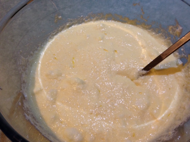 - Add about 1/3 each of flour and extra milk alternately to make a smooth, runny batter. Beat in lemon juice. Fold in lemon zest by hand.