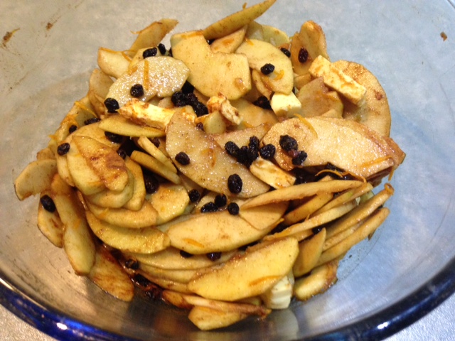 But I digress. This post is about food, not dogs; not even cute Stevie-dogs. Specifically, it is about apple pudel, a cross between apple pie and strudel. All the pleasures of a strudel but much easier to prepare, bake and serve.