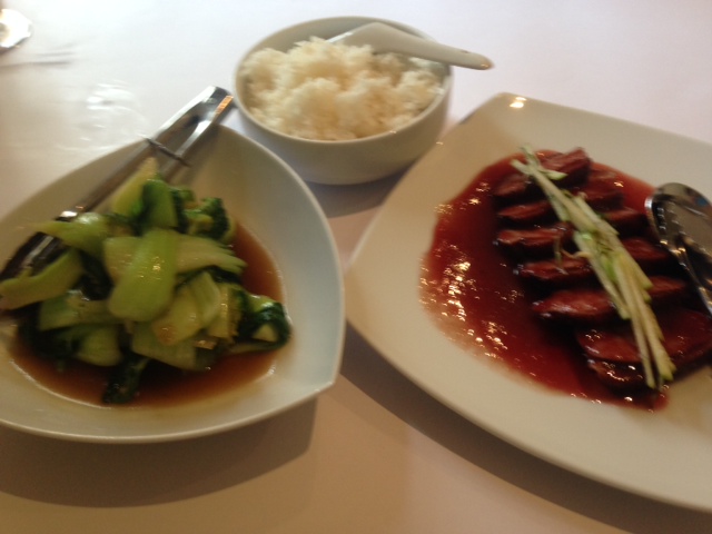 Chim vut vol goji (grilled quail with gojiberries and herbs), followed by duck breast with a spicy plum sauce, Asian vegetables and jasmine rice