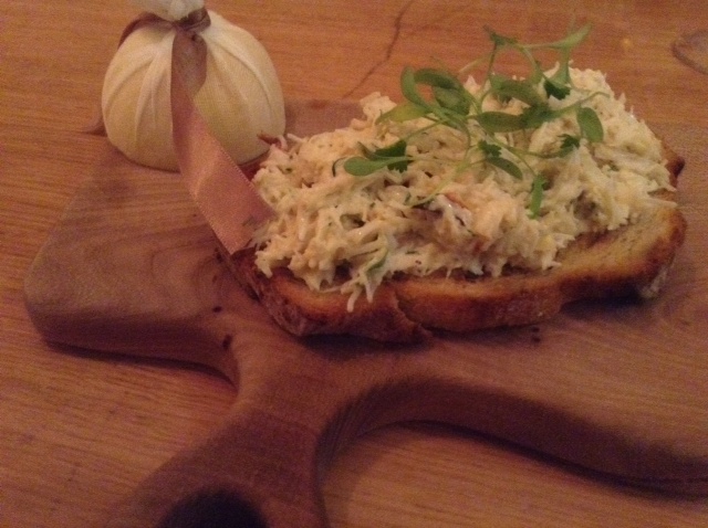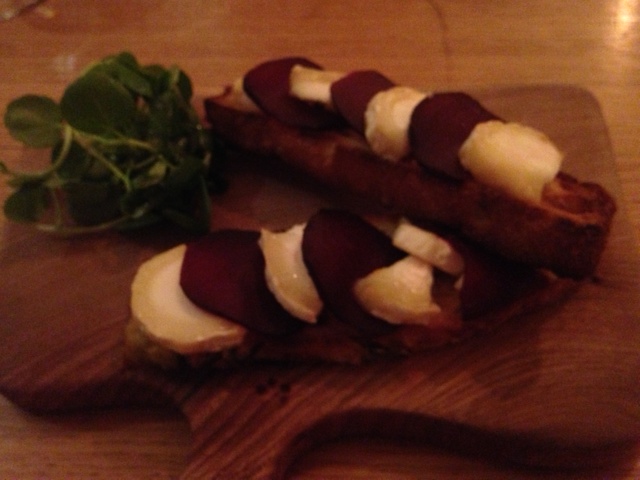 Anyway, gasping for a good lung-full of un-rarified air, we made our way to the food hall, looked briefly at the Scottish salmon going out at around $250 per kilo, and found ourselves at the Wine Bar. Daring to look at the menu, Maggie discovered that, for just over twelve quid, you could treat yourself to a nice glass of European plonk and something quite delicious on a bit of upmarket toast. French Rose and crab for her, a Portuguese ‘green’ wine for me with soft goat’s cheese and pickled beetroot. We felt really posh-like we did, for those 45 minutes.