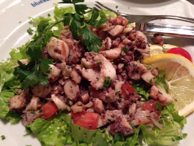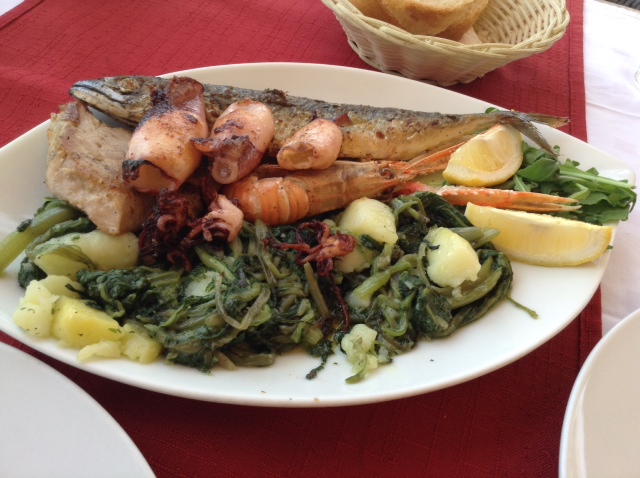 The ferry ride itself didn’t take long and we were soon in Supetar, an attractive seaside town. There were numerous cafes and restaurants dotted around the harbour; we shared a platter of chargrilled seafood and a combination of boiled potatoes and spinach – simple and delicious.