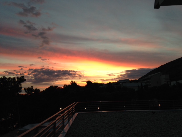 Bol itself is a small town but, from its one commercial street, a long tree-lined promenade leads to the famous sandy point called Zlatni Rat (Golden Point). Behind the trees, there are numerous resorts, catering for mostly northern Europeans in search of sun, warmth and leisure. It was not so suitable for tour groups – some of the reception staff seemed bemused, at best, by our presence – but Maggie and I enjoyed the views and the wines from the terrace adjacent to the bar.