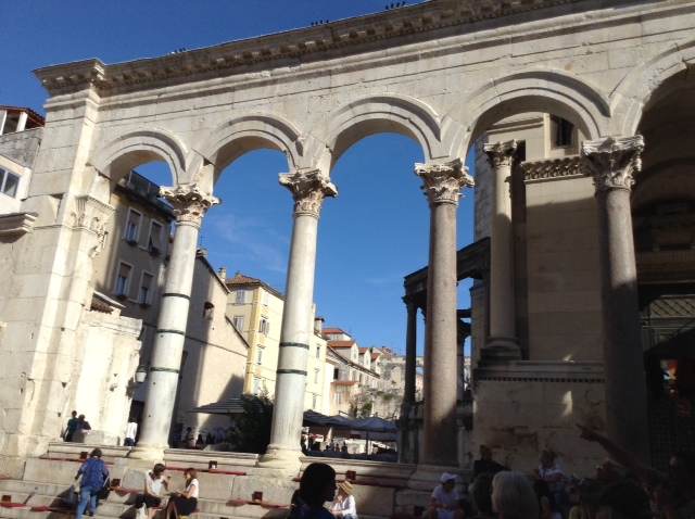 After lunch, Robert drove us to Split, now a sizeable industrial and port city, but famed for the remains of the ‘retirement’ palace of the Roman emperor Diocletian, built at the beginning of the 4th Century AD. A local expert guide took us on a detailed tour of the conserved parts of the building, including much that has been incorporated into subsequent structures.