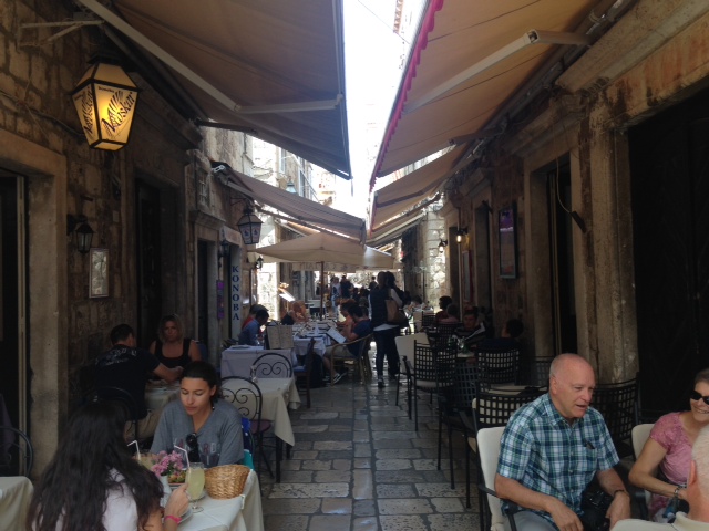 Ida covered the facts of the events of 1991-92 and then took us through the gate and into the town itself. Despite the crowds, it is was not difficult to appreciate the attractions of the Dubrovnik, with stone buildings lining both sides of the main street and the many interesting smaller streets and alleyways leading from it.