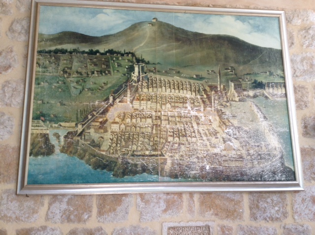 The second is of a work hanging in the Franciscan monastery, showing the town as it would have looked in medieval times, including the hill from which Dubrovnik was shelled in 1991. The monastery is also home to Europe’s oldest apothecary/pharmacy, dating from early in the 14th Century. (I am descended from apothecaries, so I was easily persuaded to pay what turned out to be an unreasonably large sum to, enter the monastery!)