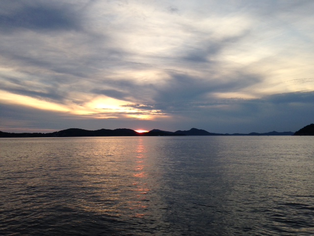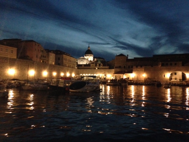 The sunset cruise was very enjoyable, a highlight of the optional tour add-ons. It was just members of our group on a compact and comfortable boat, operated by a family who were the perfect hosts. They took us from Dubrovnik’s new port, into the sea to watch the sunset, and then to a quiet bay where they served a fresh fish dinner and some of their own cheap and cheerful white wine. The cruise finished at dusk, in the glow of the lights of the old port.