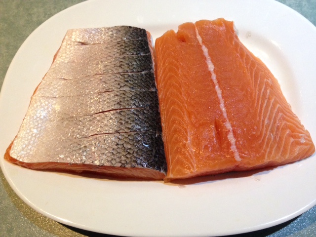 2 x 600g fillets of salmon, skin on, bones removed (ideally, the fillets will be similar in size, taken towards the tail end and from opposite sides of a whole fish)