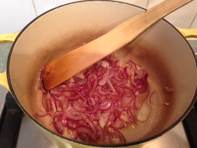 Cooking the onion and garlic: we sauteed these for a good 10 minutes until just before they began to caramelise