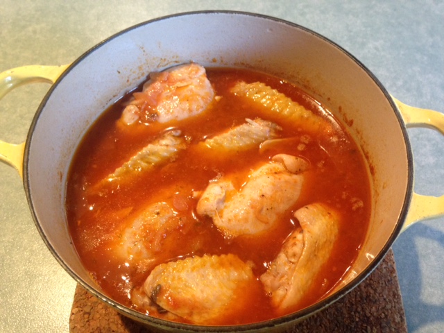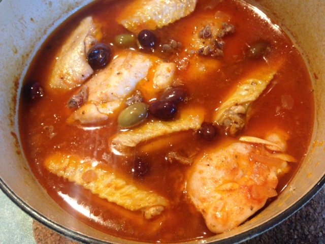 A few posts ago, I reported that Maggie and I had made a rich tomato sauce according to the recipe in Mastering the art of French cooking, and that we anticipated using it in dishes such as beef goulash and chicken cacciatore. We made the latter last weekend and it was stunningly delicious, far and away our best-ever rendition of this popular Italian dish.