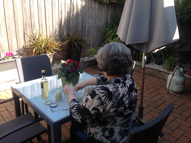Even with the protection of her contact lenses, the combination of the vapours from the horseradish and chillies was too much for Maggie and she had to grab some tissues and retreat to our bathroom! I opened up the house to the fresh wind, while Maggie took the minced roots and white vinegar outside to complete the work of putting the horseradish into jars to be stored in our refrigerator.
