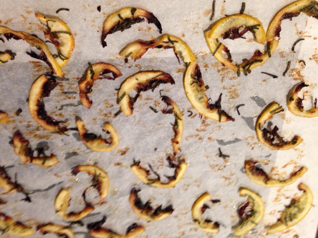 By popular acclaim, the roasted lemon was the pick of the platter, although very little of anything else was left uneaten! We prepared the lemon according to our elaborated version of a recipe by Yotam Ottolenghi.