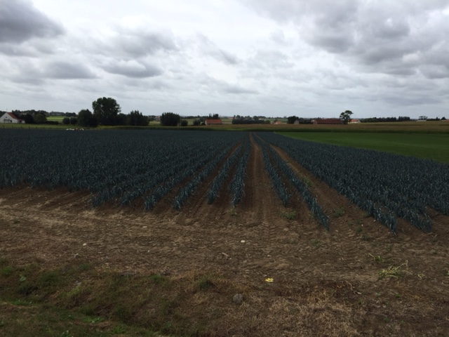 The first image, of a crop of leeks, gives you an idea of how flat and open the land is, much as it was at the time of the war. When, as often happened, groups of soldiers advanced across such spaces in the face of machine-gun fire, there was little to shield them from the deadly bullets, except for the occasional hole created by artillery fire. Death came quickly and multitudinously.