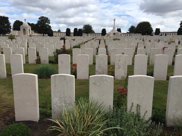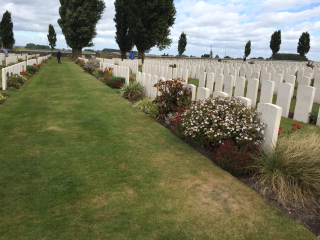 The Cross of Sacrifice – there is one at every one of the cemeteries – is located in the middle of the site, on the remains of what had been a reinforced concrete blockhouse, occupied by German machine-gunners.