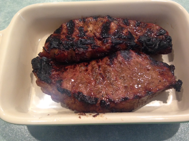 As Martha Stewart alludes in her recipe, pork shoulder chops are suitable for chargrilling because there is more marbling in their meat. So, they don’t dry out too much. A pork loin chop, say, would become tough to eat when barbecued; not very wise when your teeth are as old as mine!