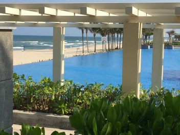 Which brings me to our most recent travel experience – six nights at the Grand Sheraton Resort Da Nang. We were prepared to discover that resort life is just a bit too quiet and sedentary for us but, thanks to its 210 metre long pool and to the abundance of friendly service we that was lavished us, we found it quite bearable, thank you! A tour of old Hoi An in the quiet of the morning was a bonus.
