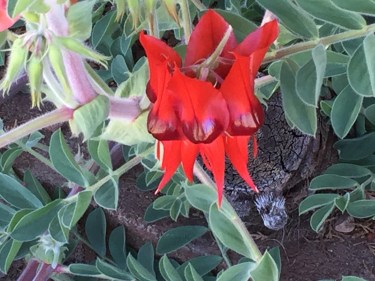 Here, if you are fortunate, you can view the Sturt Desert Pea, central Australia’s most famous flowering plant. You won’t see many of these in my hometown – too cold and too wet for too much of the year, for starters!