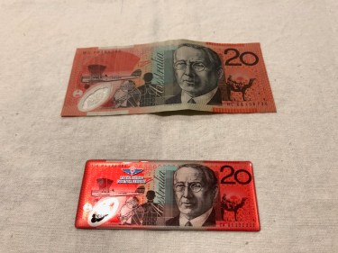 Since 1994, Flynn’s efforts have been celebrated on one side of Australia’s $20 note, which is why I bought the fridge magnet. The items depicted on the note include the plane that launched the first trial of the service; the pedal radio invented by an associate of Flynn to enable communication between remote locations and the service bases; and the ‘body’ chart devised by an RFDS nurse to help patients describe their symptoms. The last of these is still in use today, 68 years on! A new version of the note will be released later this year; it includes an image of another vital outback service, the ‘School of the Air‘, which was initiated by RFDS members and used the same pedal radio technology.