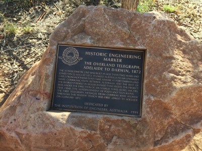 This marker, dedicated by the Institution of Engineers, Australia, celebrates the fact that the 3,178 kilometre line was constructed in less that two years under the direction of Charles Todd, whose name was later given to the ephemeral river that makes its way through the modern town. The name of Todd’s wife, Alice was given to the waterhole from which the telegraph station drew its water supply; the station precinct became known as ‘Alice Springs’; and, in 1933, that became the town’s name.