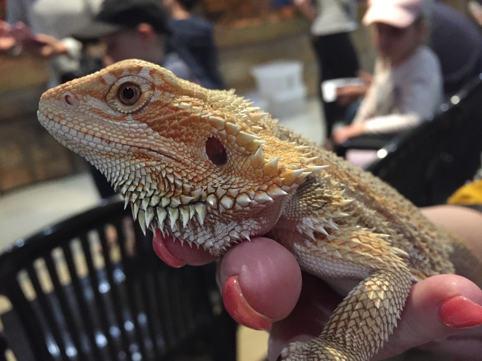 Just across the road from the RFDS base is an Australian reptile centre, where we came up very close and friendly with some of the inhabitants! For example, here is a Bearded Dragon lizard enjoying the warmth of Maggie’s hand.