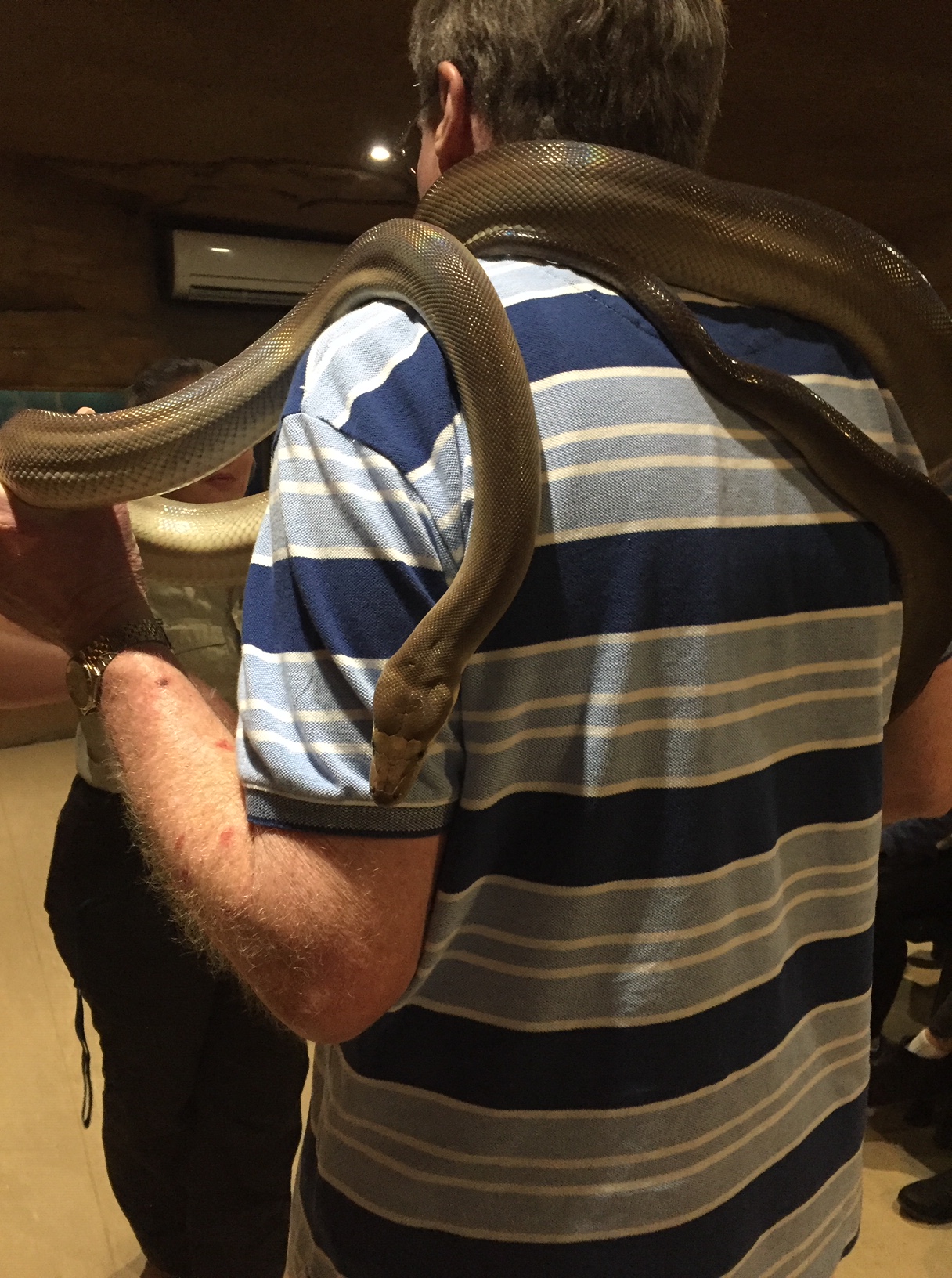 Meanwhile, I was swaddled in a python! My warm neck was its preferred location.