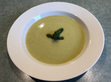 On the strength of some particularly tasty early-season asparagus, I suggested we consider make an asparagus soup. I began my search for a recipe by looking to see if Felicity Cloake had published one in her regular ‘How to cook the perfect …’ in The Guardian newspaper. Indeed she had! You can find the recipe here, including her usual exhaustive process of testing techniques and ingredients as favoured by various well known recipe-writers.