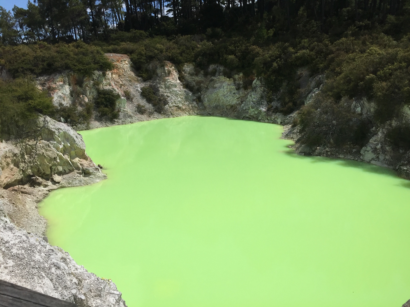 The mud pool was a mere warm-up act for what followed – the Wai-o-tapu thermal wonderland, which is home to the largest area of surface thermal activity within the Taupo volcanic zone in the centre of New Zealand’s north island. (Wai-o-tapu means ‘sacred waters’ in the Maori language.)