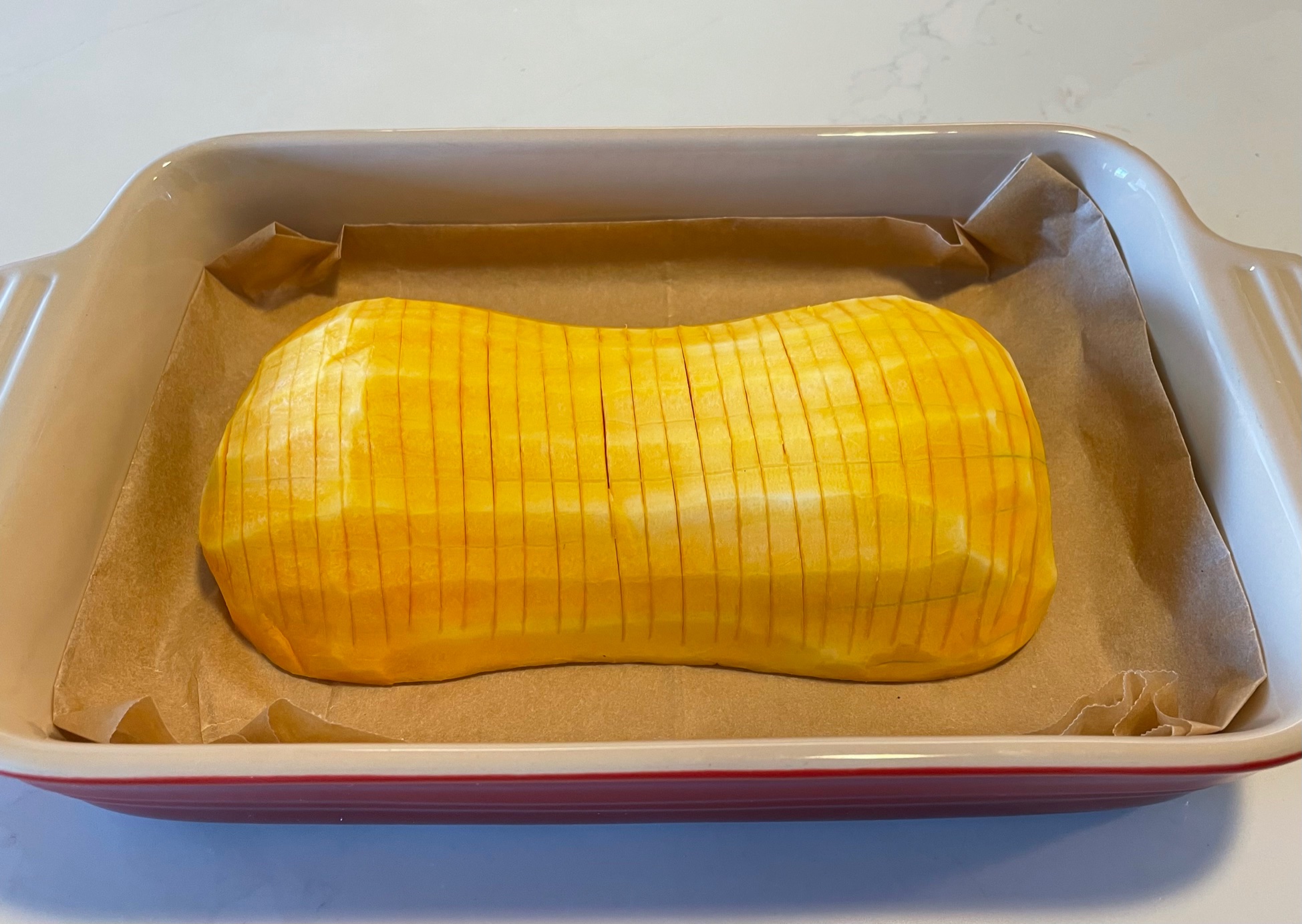 Sometimes, as in the case of this dish – a ‘hasselback’ half of butternut pumpkin – we make most of the modifications first-up. But we keep the iPhone lens in its holster so the quest for images doesn’t distract from the job at hand.