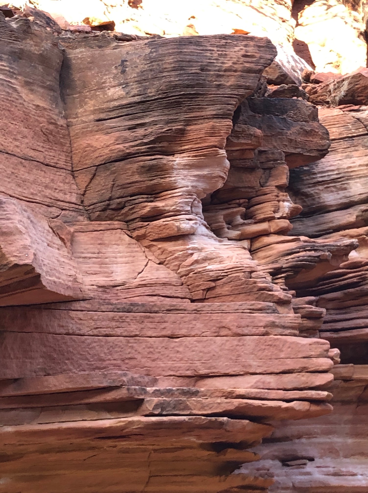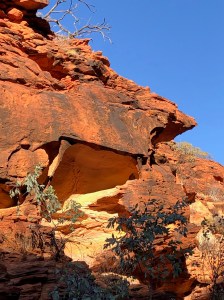 Our recent visit to the area also included a night and morning at Kings Canyon. It is a popular destination and does have its own virtues, as shown in the photos below. However, the amount of time we spent getting in and out of there, plus the comparative inadequacy of food & beverage options for coach-tour passengers, reduced our ‘bang for the buck’. In hindsight, we wish we’d spent an extra day in Uluru-Kata Tjuta National Park. Self-catering travellers would probably enjoy a Kings Canyon visit more than we did, especially if they spent more than one night there.