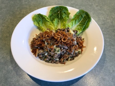 This salad is quite tasty on its own but it is an excellent side dish with grilled pork ribs which have been marinated with south-east Asian flavours. You can find an example here.