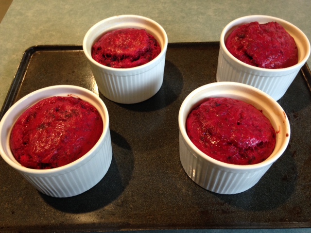 I found the original recipe, for beetroot and feta soufflés, on the internet. I made some changes from the outset, Maggie and I made further modifications in the lead up to the lunch and I have also formalised the various elements of the recipe. Here it is, followed by some photos which show some of the key steps, followed by the finished product, as served to our guests.